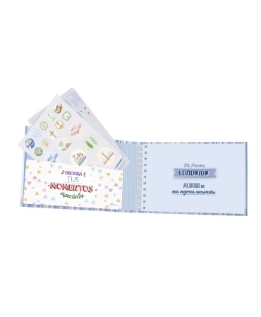 Este álbum está pensado para llenar con fotos, dedicatorias, mensajes y pequeños recuerdos que harán de cada página una historia emotiva y personal. Es perfecto para regalar antes o después de la celebración, y para que el propio niño participe en la creación de su memoria.