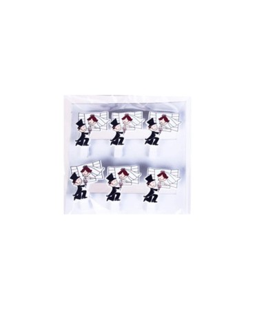 Dale un toque romántico y original a tus celebraciones con nuestro Pack de 6 Pinzas Decoración Novios de Madera, perfectas para complementar cualquier detalle de boda con mucho estilo y personalidad.