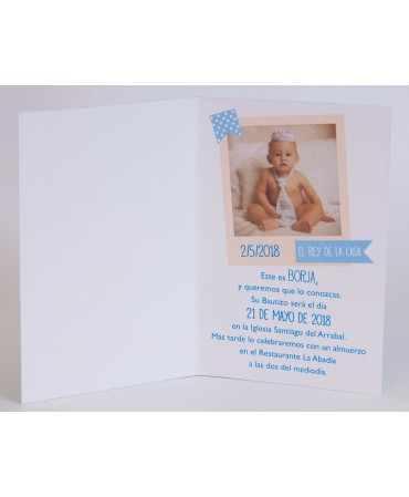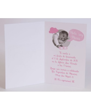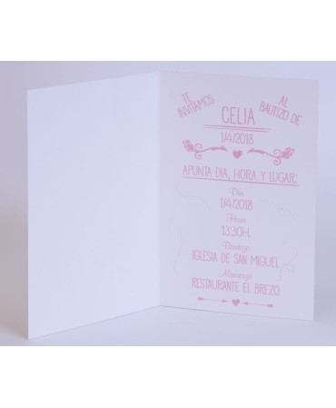 Original invitación de bautizo. Incluye sobre a juego. Min 25 ud