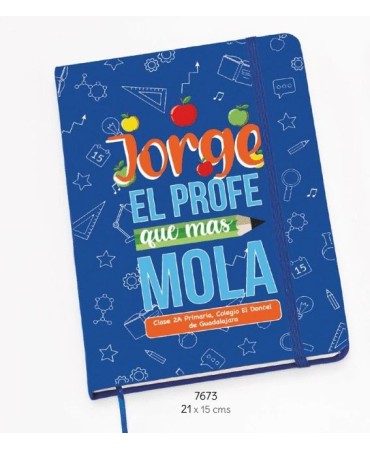 Original libreta profesor/a azul dibujos personalizada. 21 x 15 cms. (din a5).