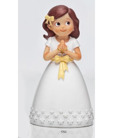 Celebra un momento especial con esta hermosa figura de niña de comunión rezando. Su diseño delicado y lleno de detalles transmite la espiritualidad y emoción de este día tan importante.