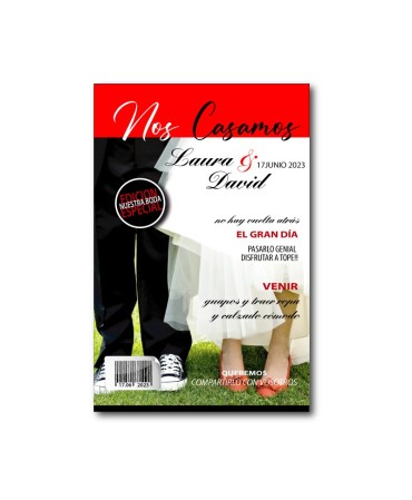 Original invitación de boda revista. Fabricada en papel de primera calidad. Min 25 ud