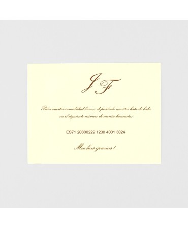 Original tarjeta adicional tarjeton marron como complemento para invitaciones de boda. Medida: 7,5 x 10 cm Impresión: 1 cara Se presenta en planchas pretroqueladas para su fácil impresión. Min 25 ud.