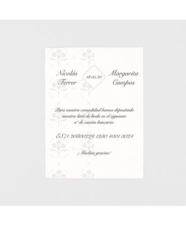 MUY IMPORTANTE escribirnos el texto deseado y fecha del enlace en el recuadro correspondiente de la pestaña personalizacón del producto. También puedes enviarnos la información por mail a: impresion@tusdetallesonline.com