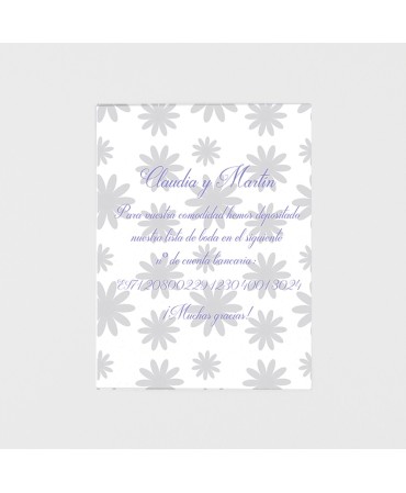 Tarjetita para Plano, indicaciones como documentación complemento Invitación de Boda ETC... Tamaño A6 148,5 x105 mm realizada en cartulina blanca mate 120 gr/m (consultar otros papeles). Las imágenes deberán ser suministradas por el cliente con calidad apropiada. Incluida impresión personalizada a todo color 2 caras. Min 25 ud.
