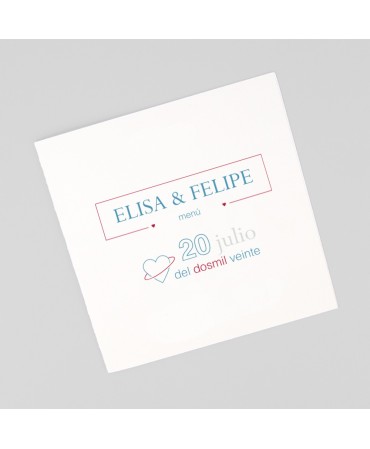 Original menu para boda decorada lazo granate. Fabricado en papel de primera calidad. Impresión: 1 cara Se presenta en planchas pretroqueladas para su fácil impresión. Min 25 ud.