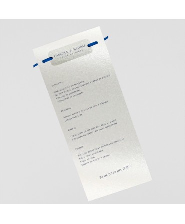 Menu para boda lazo azul marino